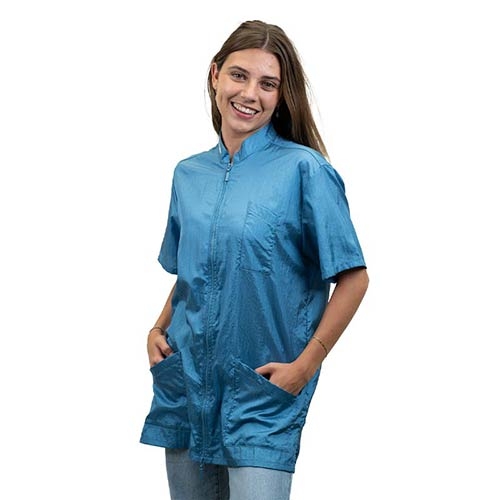 Bluza zapinana jest z przodu na zamek błyskawiczny, co umożliwia szybkie i wygodne zdejmowanie po zakończonej pracy – bez kontaktu sierści z twarzą i głową. Prosty krój zapewnia swobodę ruchów i komfort nawet podczas wielogodzinnej pracy.