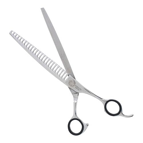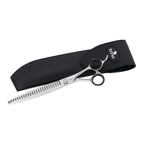 jakości japońskiej stali o twardości od 54 do 56 HRC. Ergonomiczna rękojeść z wbudowanym hakiem została wyprofilowana pod odpowiednim kątem, aby zapobiec męczeniu się nadgarstka podczas strzyżenia.