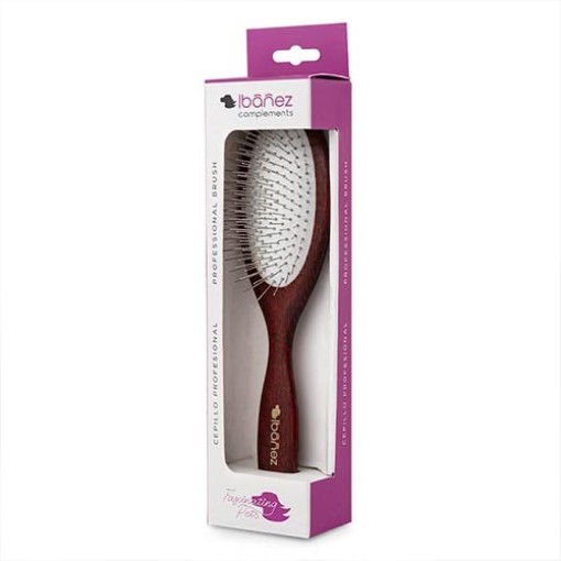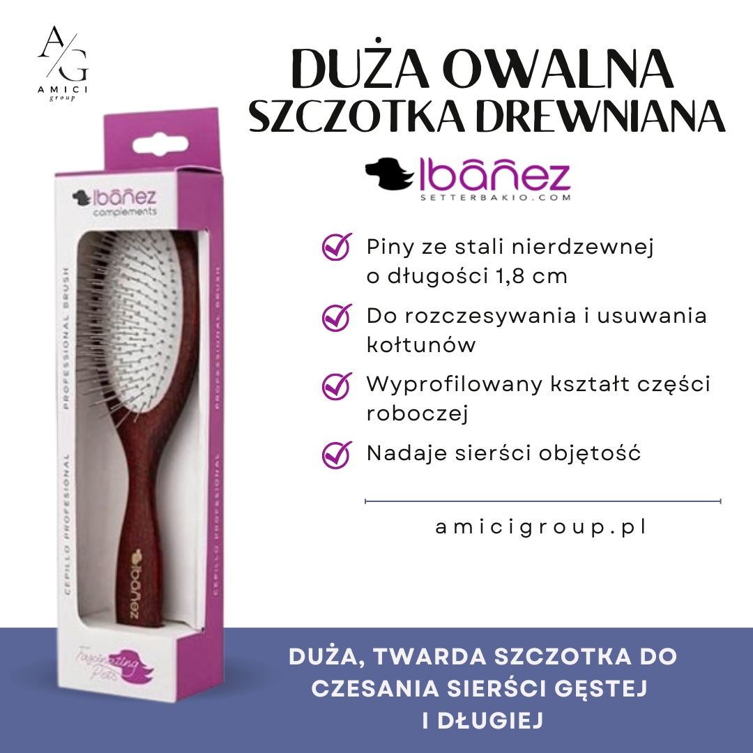 Profesjonalna duża owalna szczotka Ibanez, wykonana z drewna i wysokiej jakości metalu do sierści długiej i gęstej.