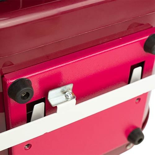 Suszarka Ibanez ForceTek posiada wbudowane nóżki, które zapewniają stabilność podczas pracy na stole. Można ją także powiesić na ścianie za pomocą dołączonych do zestawu elementów.